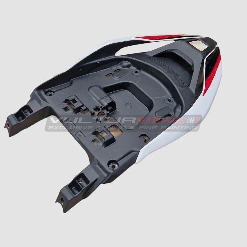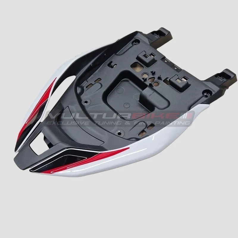 Verleihen Sie Ihrem Ducati Multistrada V4S Eisbergweiß einen noch sportlicheren Look, indem Sie das Heck der RS-Version in der gleichen Farbe wie serienmäßig lackieren.