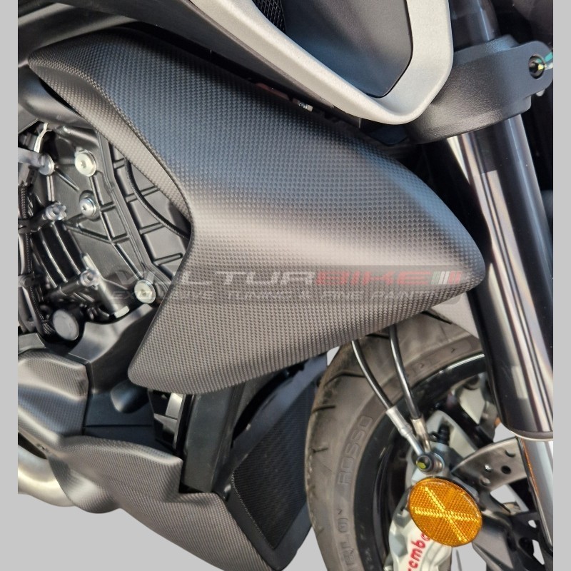 Our high-quality carbon fiber accessories are made through the unique high-pressure vacuum autoclave curing process, which is also used in aeronautics. All the Vulturbike components are created specifically to allow the replacement of the original parts of the fairing, managing to improve the aesthetics of the bike without having to make any changes. Thanks to the lightness and resistance of carbon, it is possible to combine beauty with practicality. Material - carbon (200g./plain weave -Ducati Performance style).
