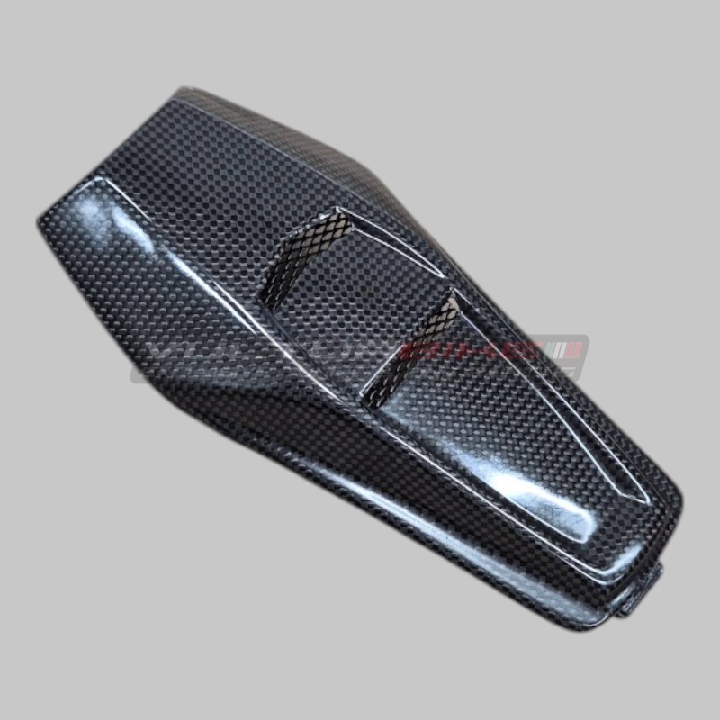 Our high-quality carbon fiber accessories such as this seat pad are made through the exclusive autoclave polymerization process with high-pressure vacuum, also used in aeronautics. All Vulturbike components are created specifically to allow the replacement of the original parts of the fairing, managing to improve the aesthetics of the bike without having to make any changes. Thanks to the lightness and strength of carbon, it is possible to combine beauty with practicality. Material - carbon (200g./plain weave -Ducati Performance style).