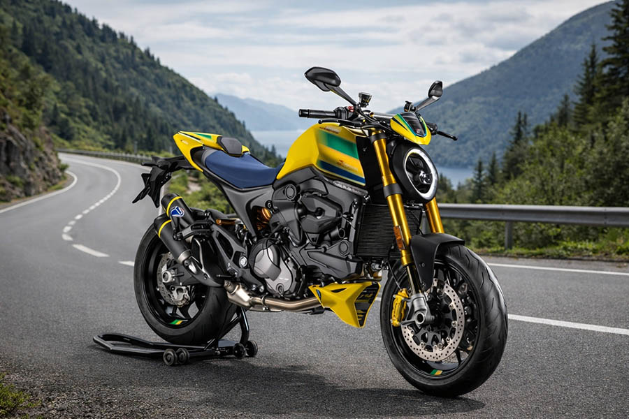 The choice of the Monster as the base for this limited edition is also linked to Ayrton Senna’s personal history: he was in fact one of the very first owners of the Monster 900, which he used for his daily rides around Monte Carlo and even rode to the gala evening for the presentation of the 1993 Monaco Grand Prix. What Senna loved about the Monster was its simple philosophy of placing riding enjoyment at the center of the experience: a sporty engine perfectly suited for road use, Superbike-derived chassis, wide handlebars and no fairing.
