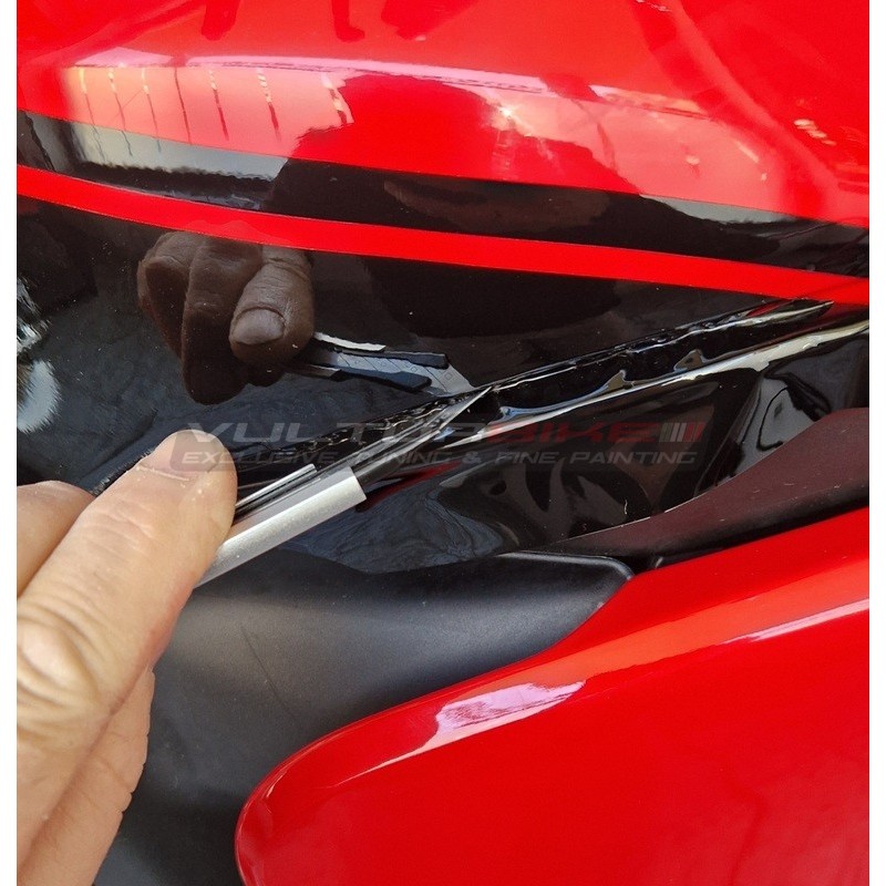 Nuestros gráficos están concebidos y "diseñados" directamente en el carenados de la moto, para que las líneas respeten las formas y curvas del modelo en cuestión.