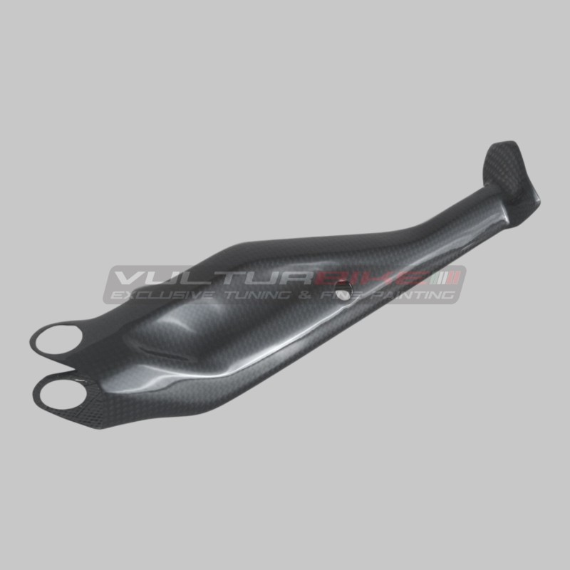 La cubierta lateral del caballete es un accesorio de fibra de carbono fina que protege el moble, mejorando también la estética de la moto.