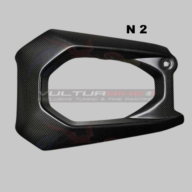Nuestros accesorios de fibra de carbono de alta calidad, como este, se fabrican mediante un proceso único de curado en autoclave con vacío a alta presión, que también se utiliza en aeronáutica. Todos los componentes Vulturbike están creados específicamente para permitir la sustitución de las piezas originales de la carenado, logrando mejorar la estética de la moto sin necesidad de hacer cambios. Gracias a la ligereza y resistencia del carbono, es posible combinar belleza con practicidad. Material - carbono (200g./tejido liso -Ducati estilo de prestación)