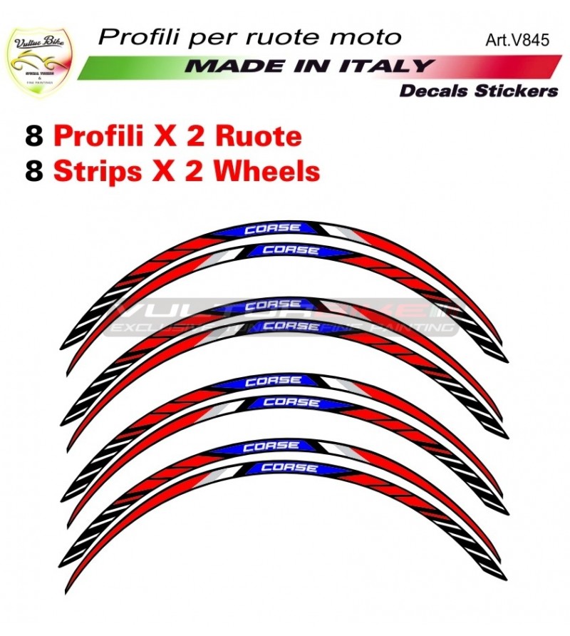 Kit d’autocollants CORSE rouge bleu pour roues de 17 pouces