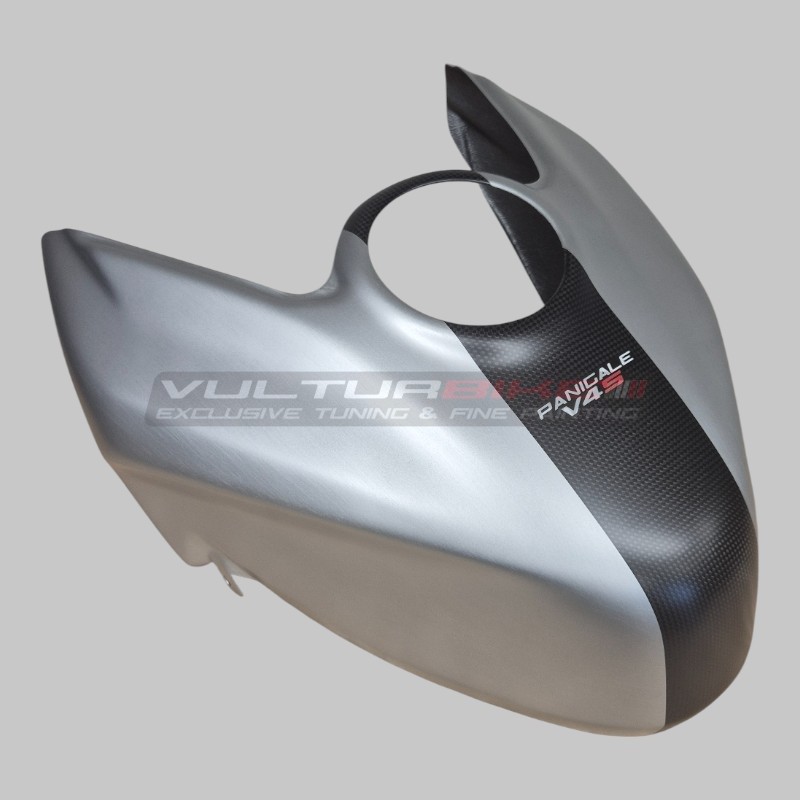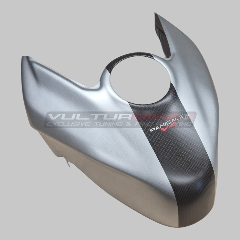 Couvercle de réservoir de carburant effet aluminium brossé avec bande de carbone - Ducati Panigale / Streetfighter V4 / V4S