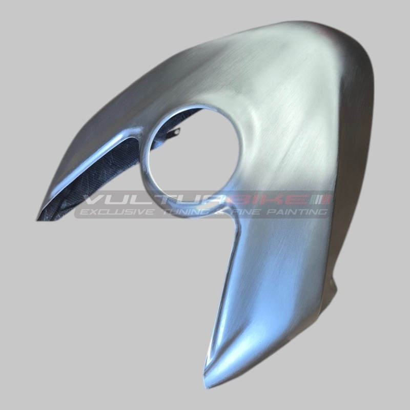 Cover serbatoio in pregiata fibra di carbonio per Ducati Panigale / Streetfighter V4 verniciata con l'esclusivo effetto alluminio spazzolato.