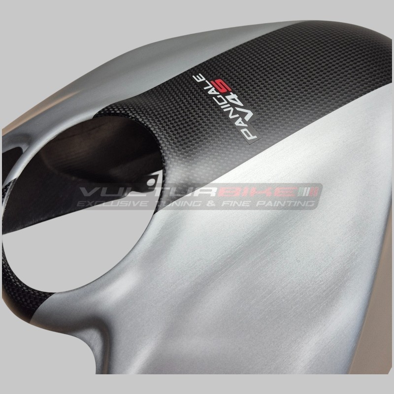 Coperchio serbatoio effetto alluminio spazzolato con striscia in carbonio - Ducati Panigale / Streetfighter V4 / V4S