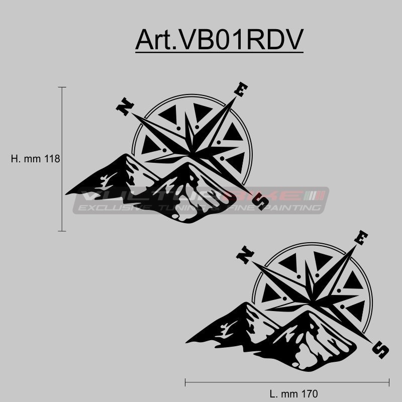 Il kit è composto dai due adesivi evidenziati in foto, ideali per decorare qualunque supporto (valigie, carene, auto ecc.).