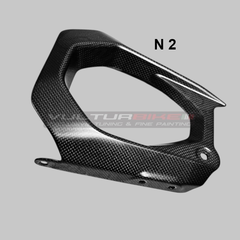 I nostri accessori di elevata qualità in fibra di carbonio come questo sono realizzati attraverso l'esclusivo processo di polimerizzazione in autoclave con vuoto ad alta pressione, utilizzato anche in aeronautica. Tutte le componenti Vulturbike sono create appositamente per consentire la sostituzione delle parti originali della carena, riuscendo a migliorare l'estetica della moto senza dover apportare alcuna modifica. Grazie alla leggerezza e la resistenza del carbonio è possibile unire la bellezza alla praticità. Materiale - carbonio (200g./plain weave -Ducati Performance style)